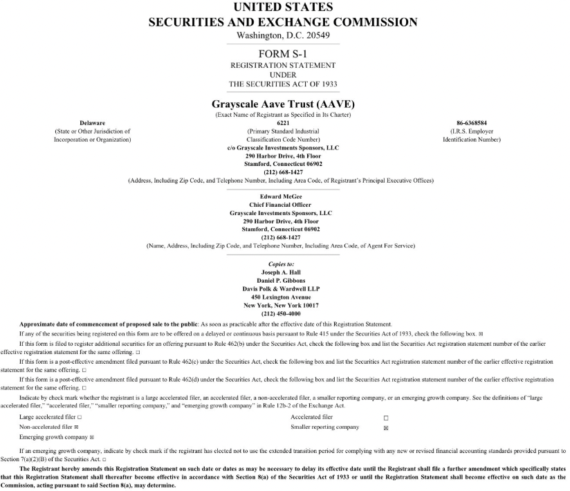 Grayscale a officiellement déposé un formulaire S-1 auprès de la SEC en vue du lancement d’un ETF AAVE, marquant une nouvelle avancée dans l’intégration des actifs DeFi dans la finance traditionnelle.