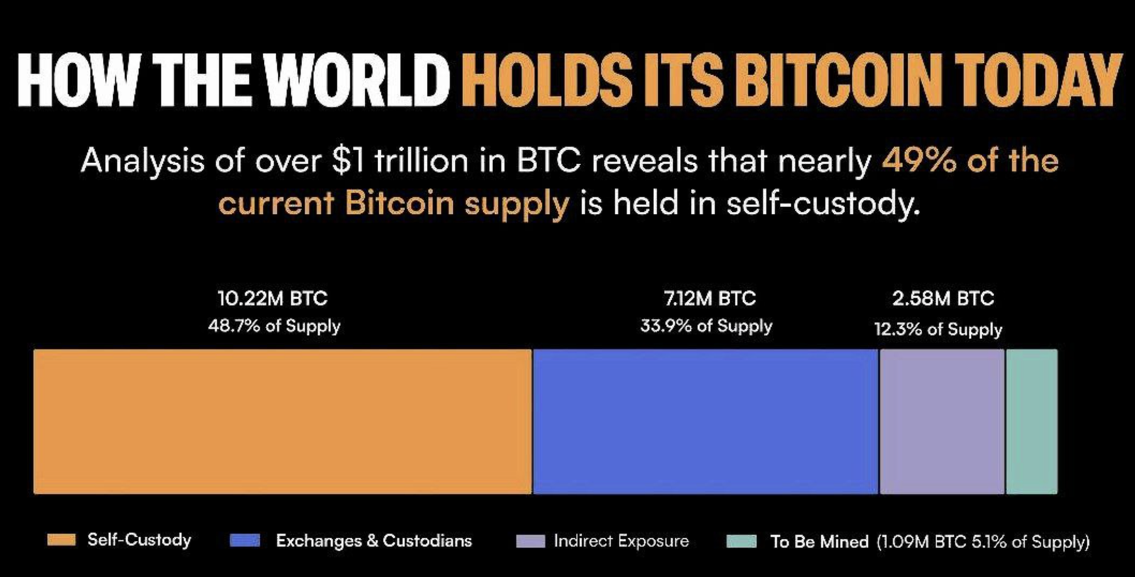 Plus de 10 millions de bitcoins sont désormais détenus en autodétention (self-custody), un niveau historiquement élevé qui en dit long sur le comportement des investisseurs. La self-custody signifie que les utilisateurs contrôlent directement leurs clés privées, sans passer par une plateforme centralisée comme un exchange.