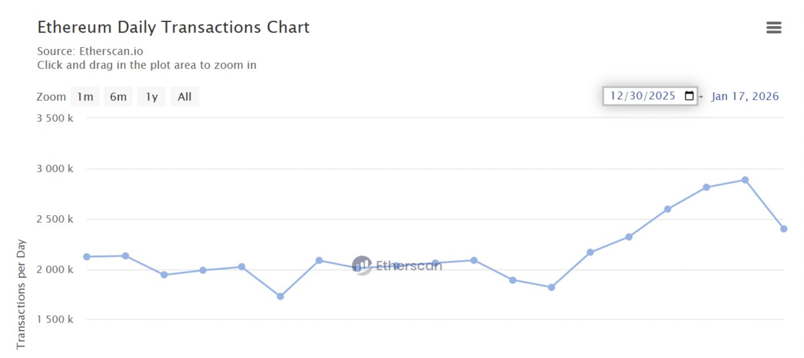 Ethereum vient d’atteindre un nouveau sommet historique en termes d’activité réseau, avec 2,88 millions de transactions traitées en une seule journée. Ce record, établi vendredi, montre à quel point la blockchain Ethereum est aujourd’hui utilisée à grande échelle. Une transaction correspond à une action sur le réseau : envoyer des fonds, utiliser une application décentralisée, échanger des tokens ou interagir avec un smart contract.