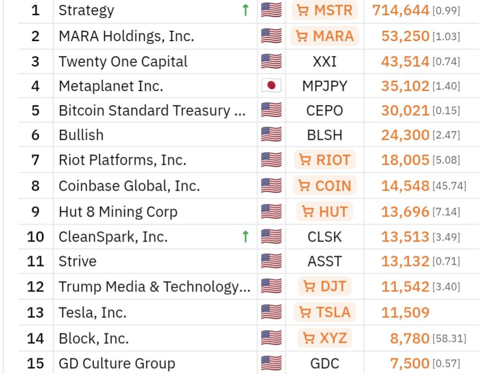 L’entrée dans le Top 15 des entreprises détenant du Bitcoin en trésorerie nécessite désormais un minimum de 7 500 BTC, selon les dernières données du marché. Ce seuil en hausse illustre l’intensification de la concurrence entre sociétés pour accumuler un actif à l’offre strictement limitée à 21 millions d’unités.