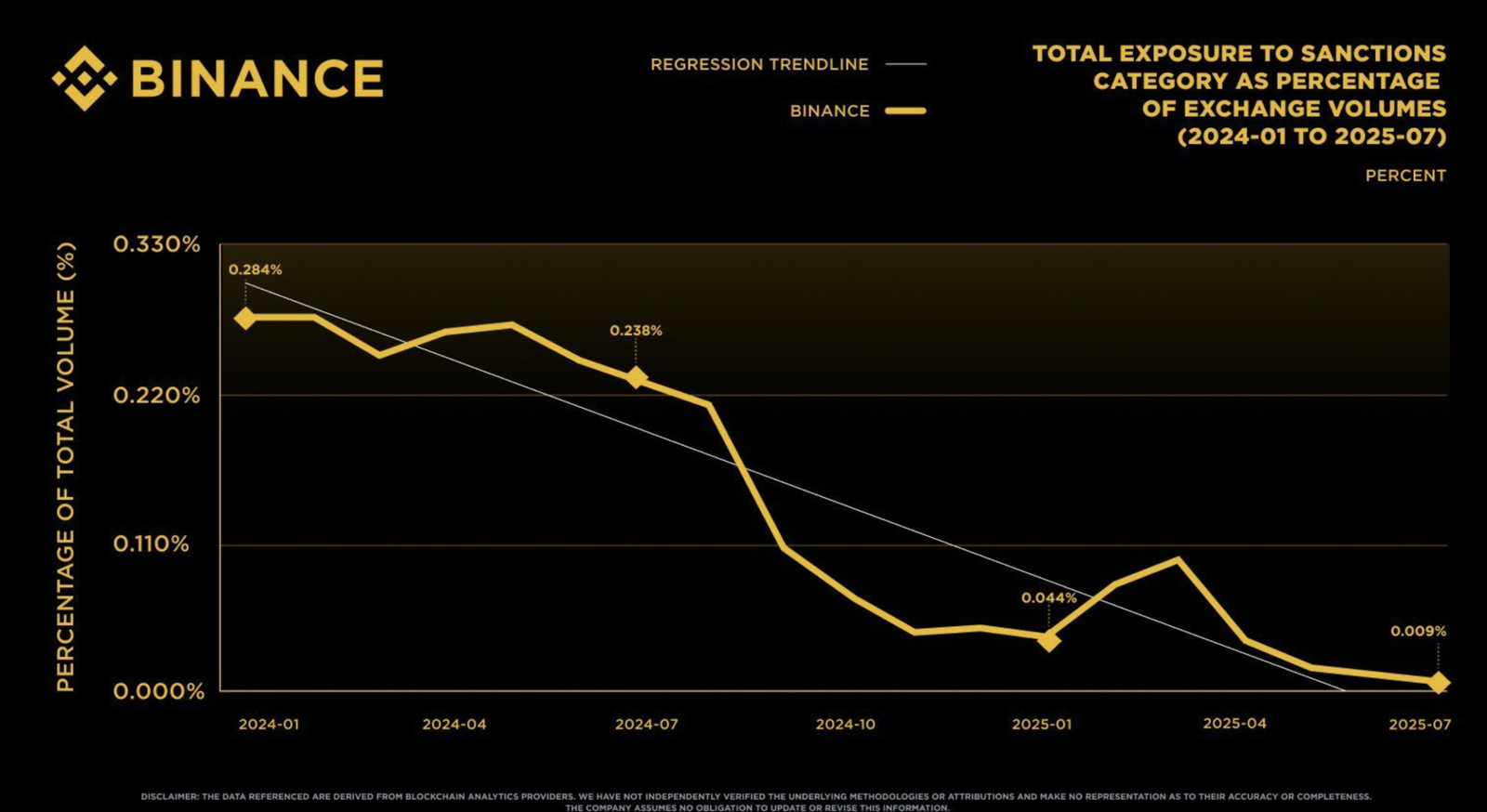 Binance affirme avoir réduit son exposition liée aux sanctions de 96,8 % entre janvier 2024 et juillet 2025, mettant en avant des progrès significatifs dans ses efforts de conformité.