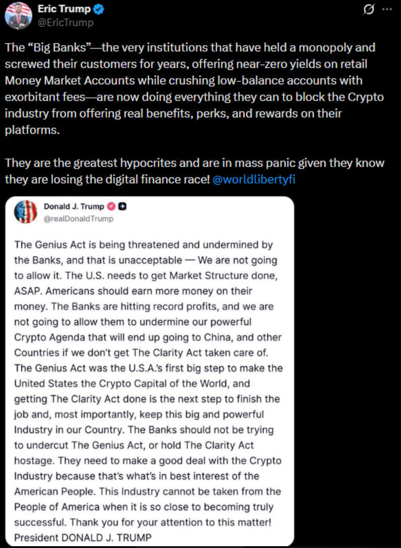 Eric Trump Attaque Les Grandes Banques : “Elles Bloquent La Crypto Et Surtaxent Les Clients”