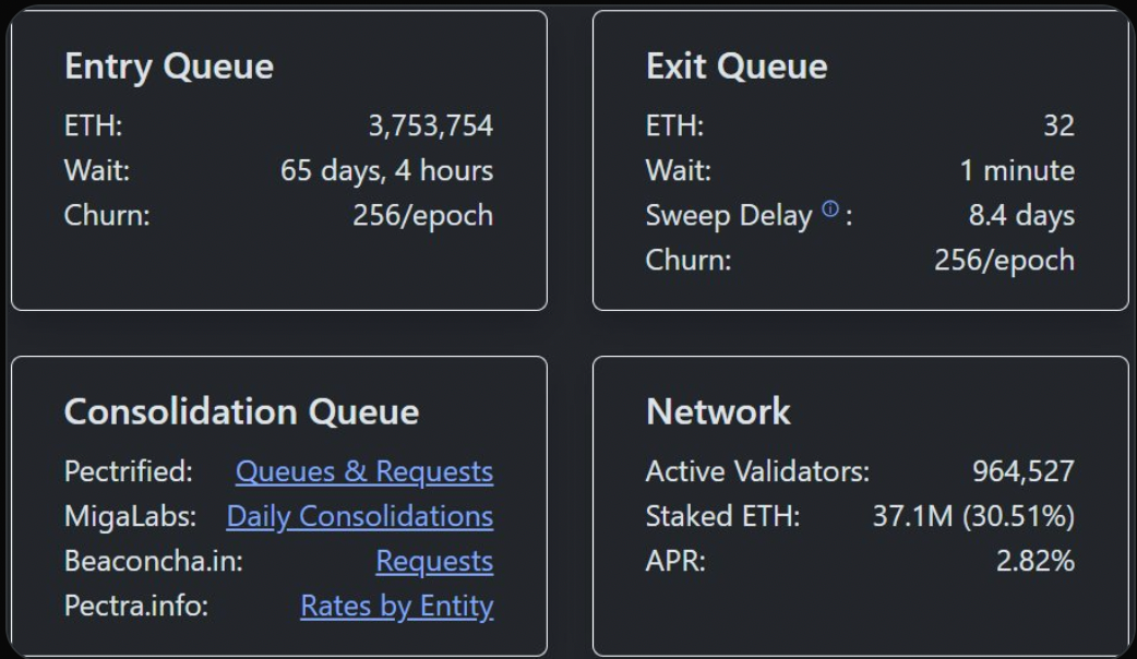 Les dernières données on-chain montrent une situation notable sur la file d’attente des validateurs d’Ethereum :