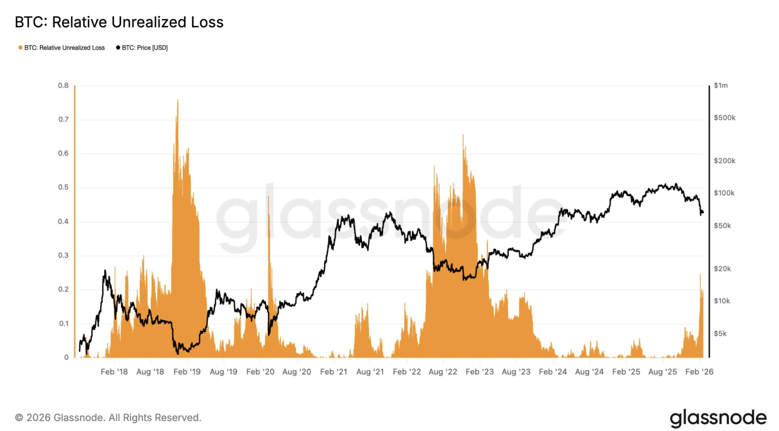 Selon Glassnode, la perte latente du Bitcoin atteint actuellement 67 000 $, ce qui représente environ 19 % de sa capitalisation boursière.