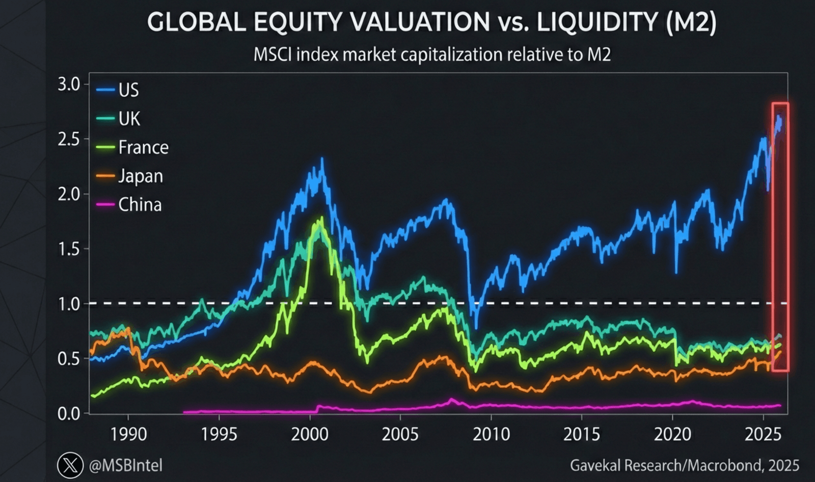 Le marché boursier américain atteint des sommets historiques en termes de valorisation par rapport à la masse monétaire M2, selon les derniers indicateurs financiers.