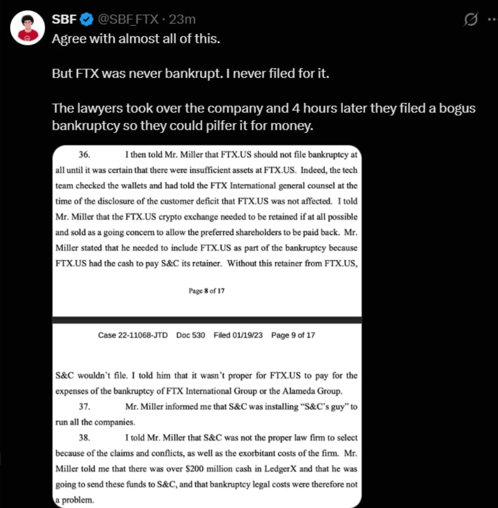 Sbf Choque : “Ftx N’a Jamais Été En Faillite” – Les Avocats Accusés D’avoir Agi Sans Accord